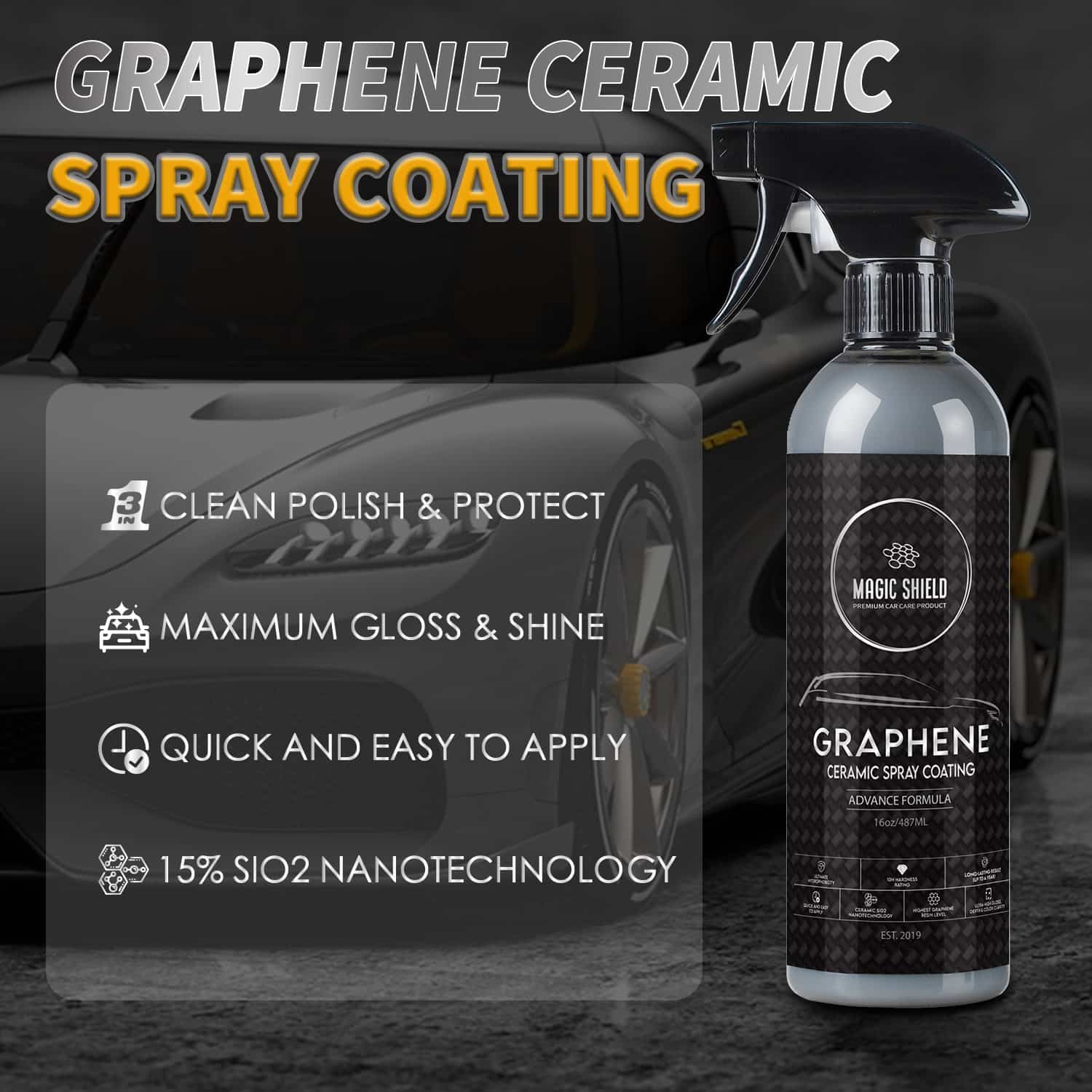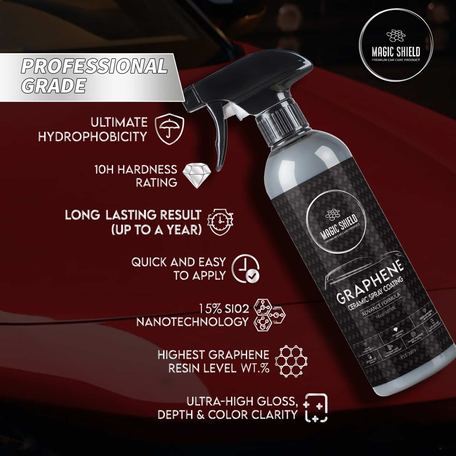 - Professional-grade: Magic Shield Graphene Spray is a professional-grade product that delivers exceptional results. Its advanced formula contains high-quality ingredients that provide superior protection and performance, making it an ideal choice for car enthusiasts and professionals alike.