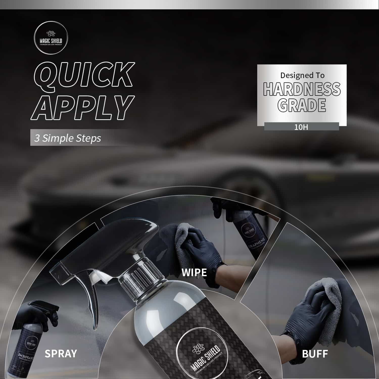 - Easy to apply: Applying Magic Shield Graphene Spray is quick and easy. Simply spray it onto the surface of your car and wipe it off with a microfiber cloth. No complicated application process is required, making it an ideal option for busy car owners who want to keep their vehicle protected without spending hours on maintenance.
